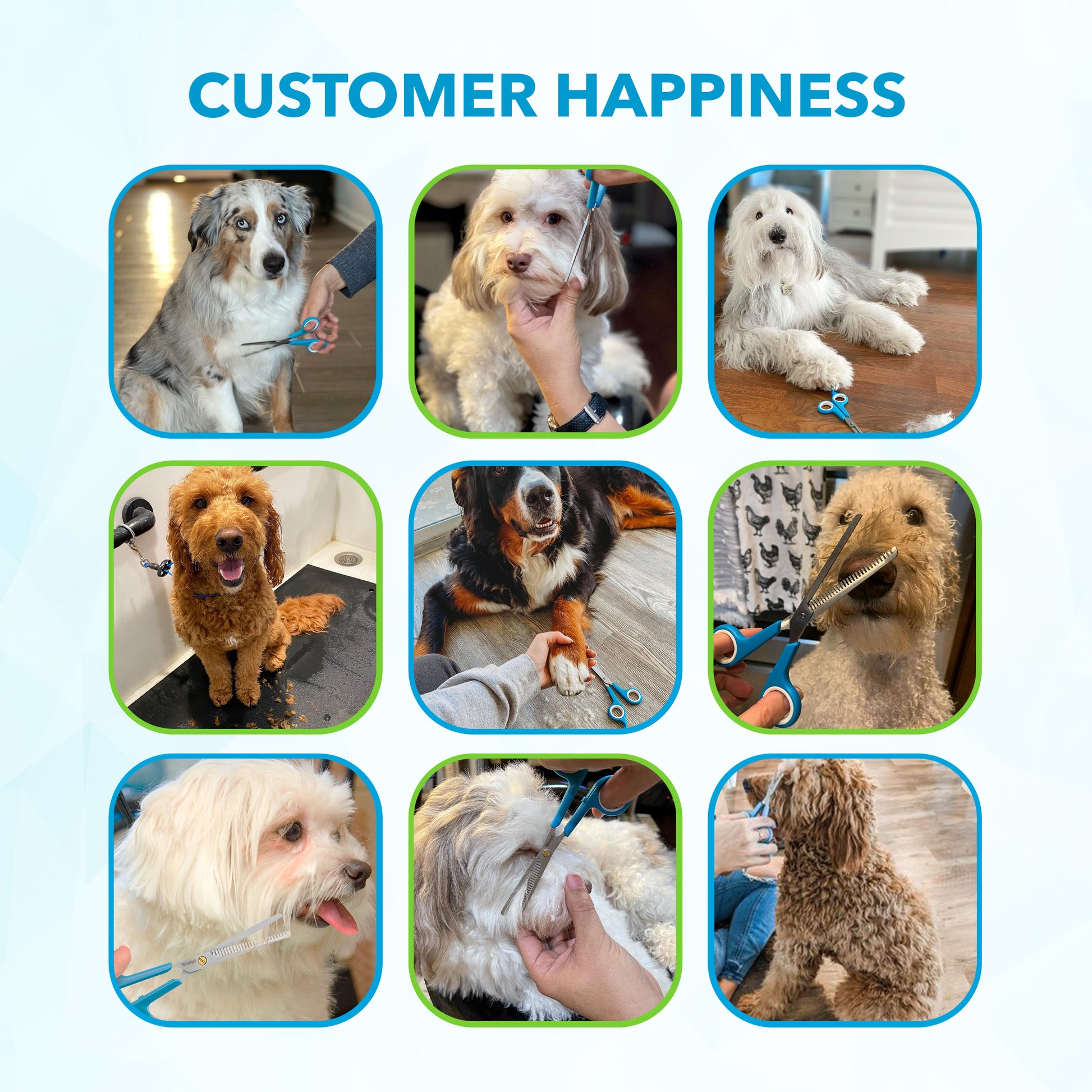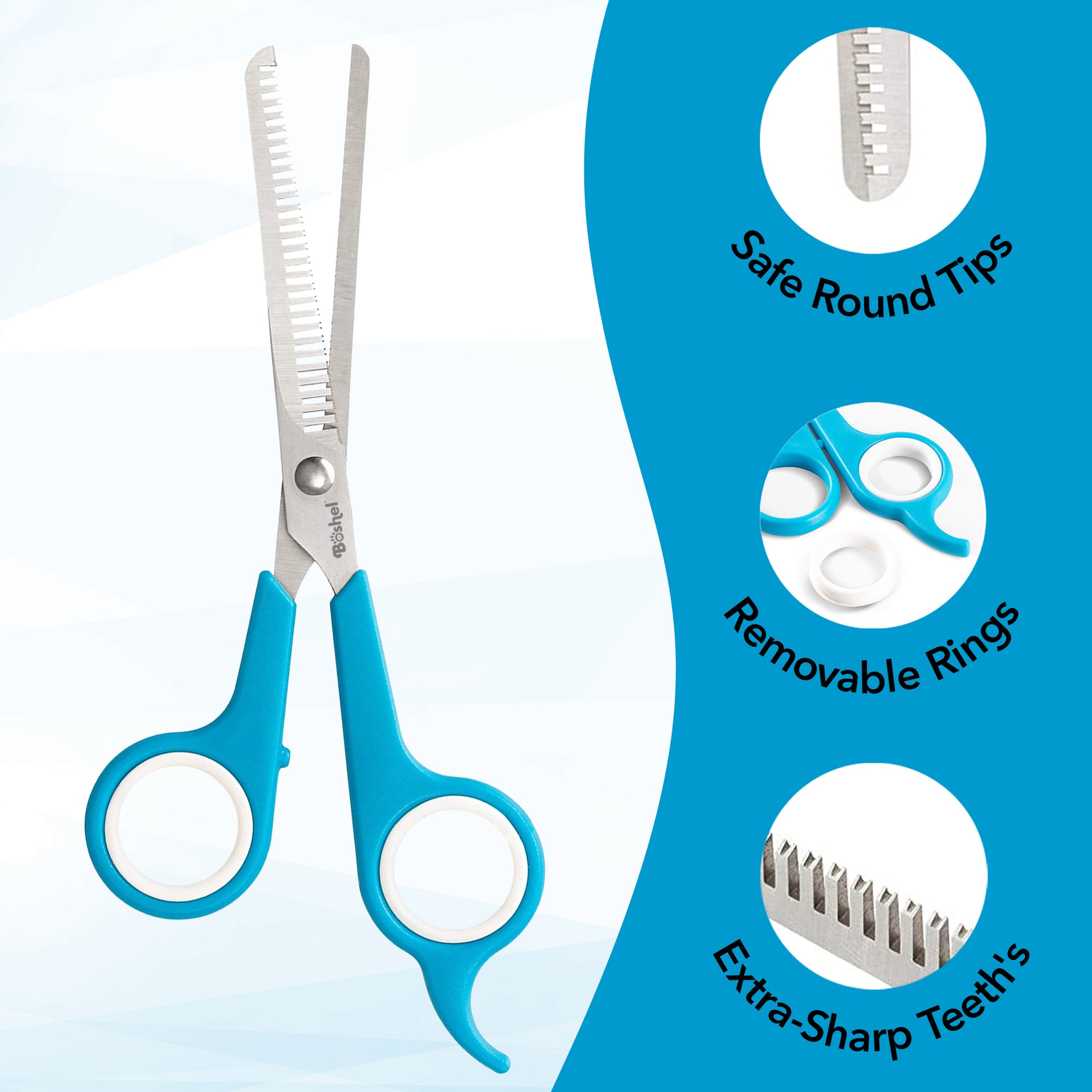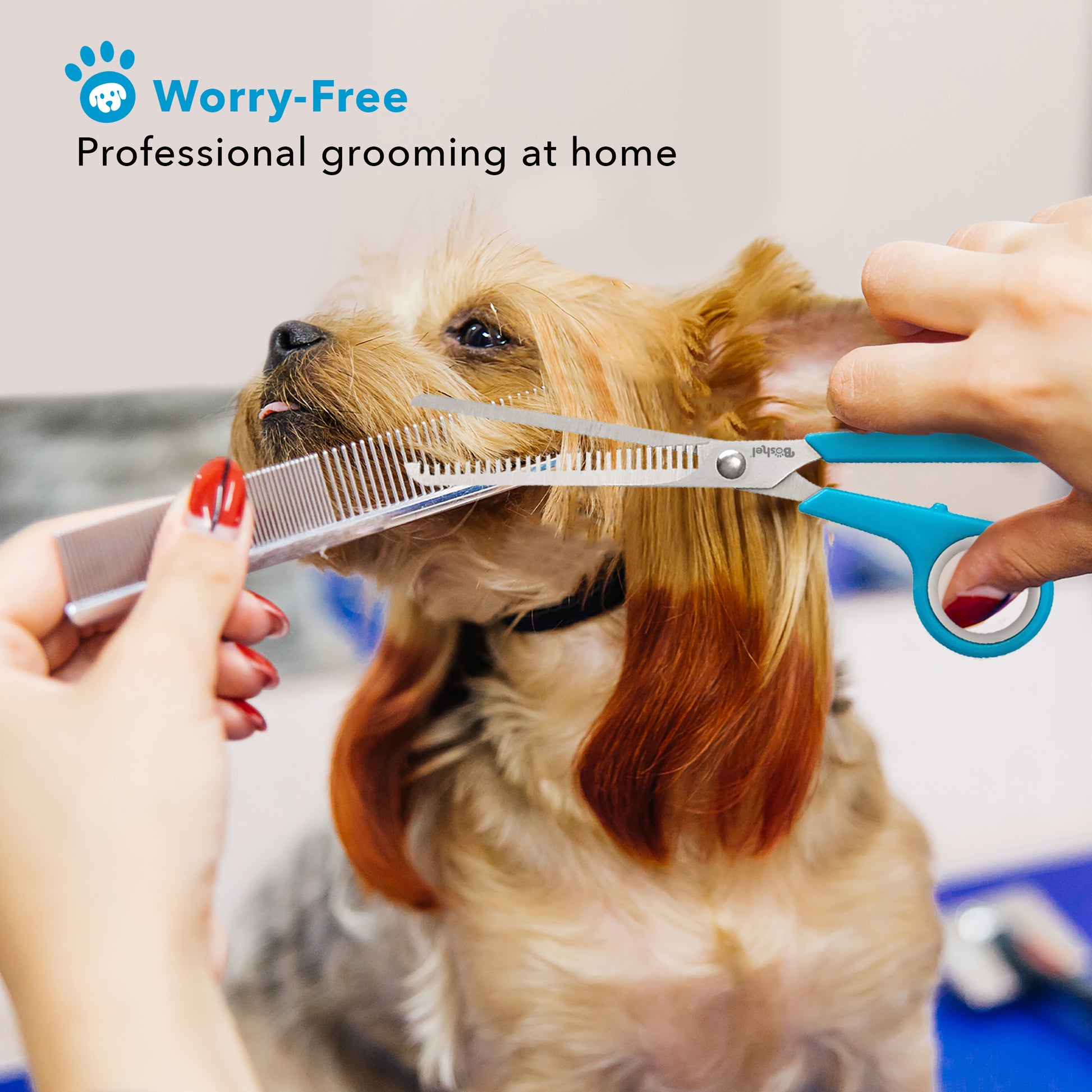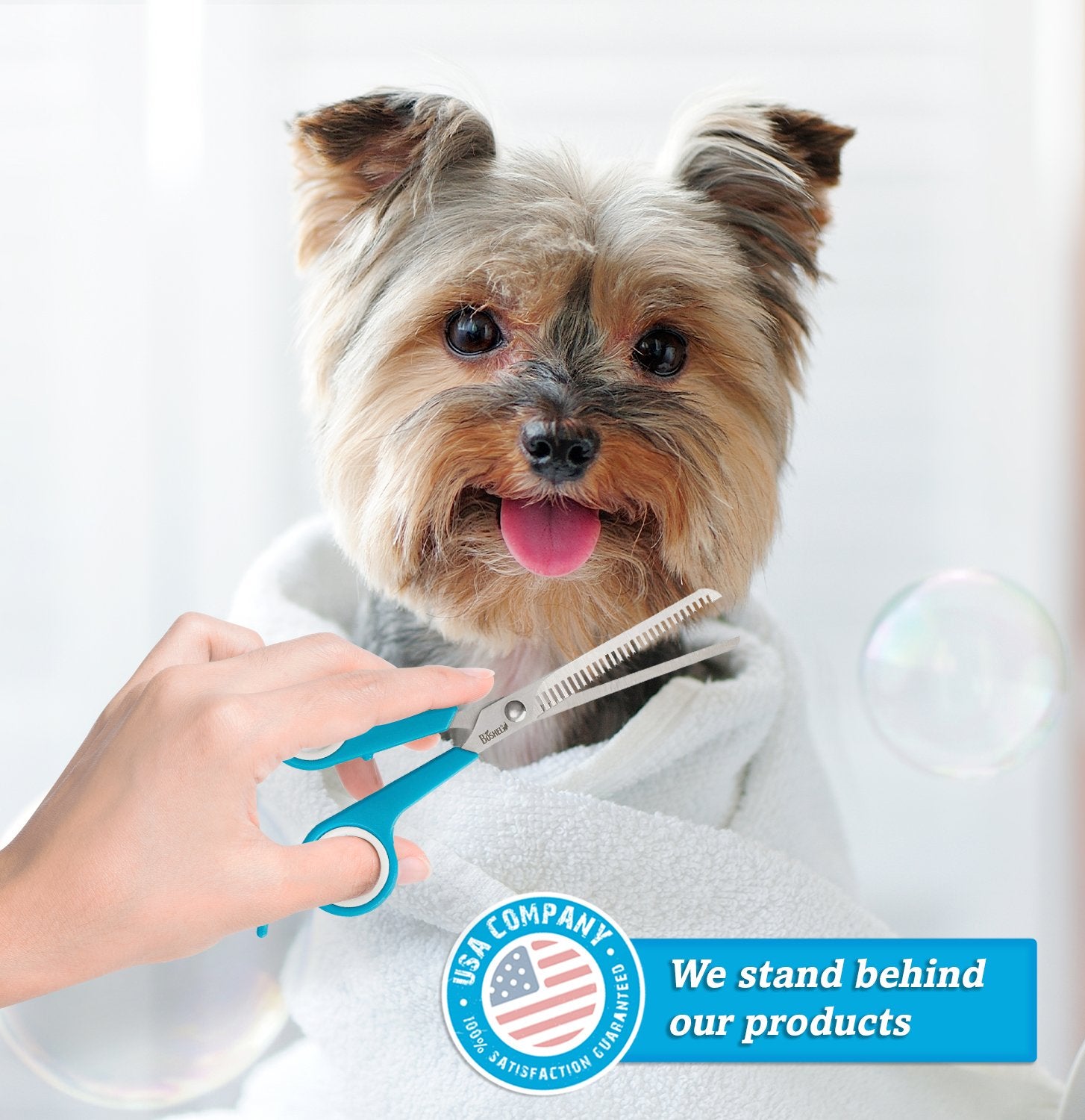 - Designed for Maximum Safety - Never have to worry about injuring your furry buddy. All our dog trimming scissors feature rounded safety tips. Perfect for beginners, these stainless-steel texturizing scissors for dogs help you save money while you snip with confidence.