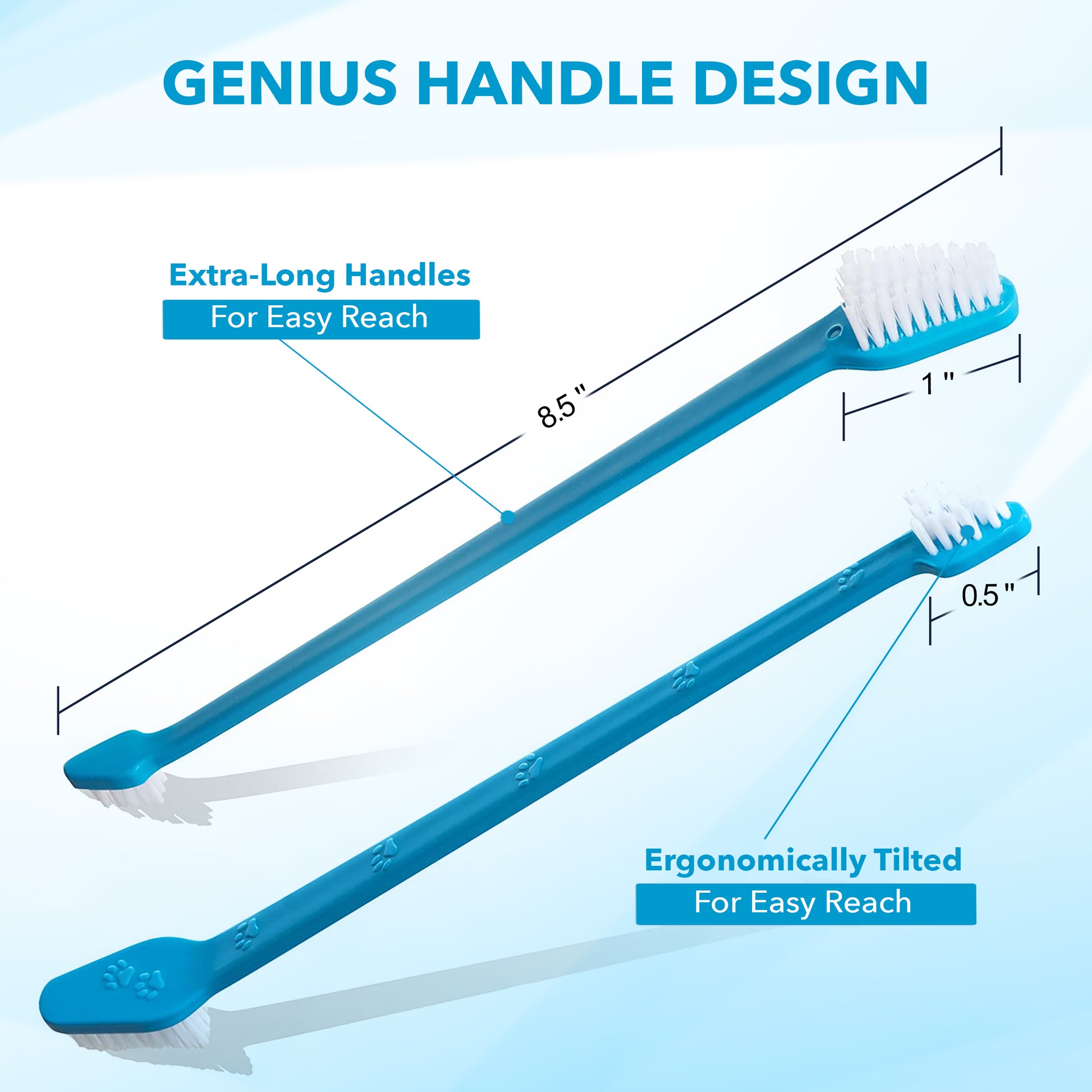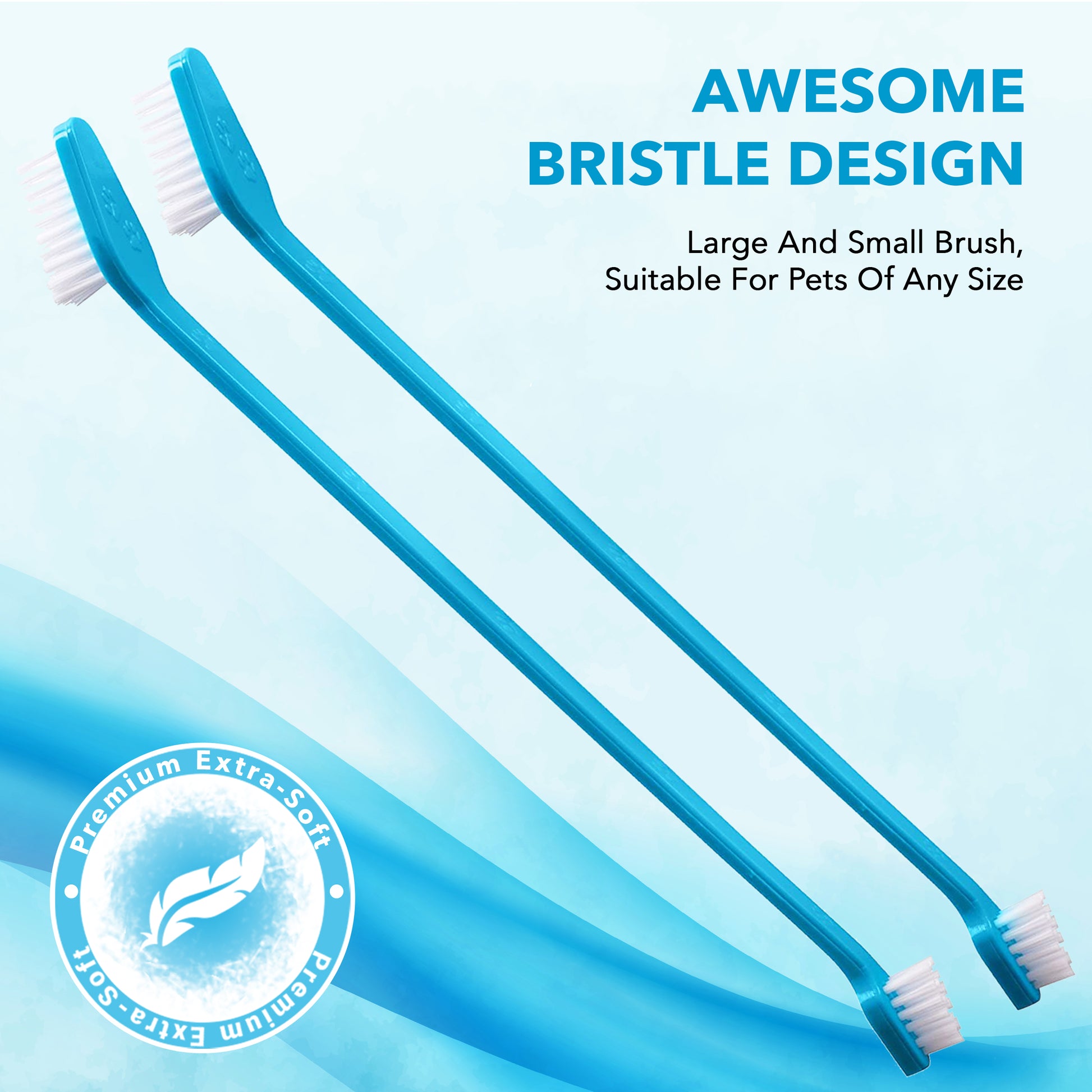 - Ideal For Large Or Small Dogs - Our dog tooth brushing kit works great for all dog breeds, large and small. You can use it as a dog brush for poodles or German shepherds. Each brush measures 8.5” long with a 1” big brush and 0.5” small brush head that will fit into any dog’s mouth. It is also ideal for use as a cat toothbrush set.