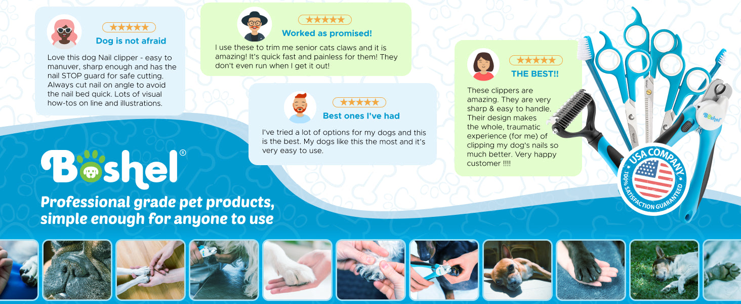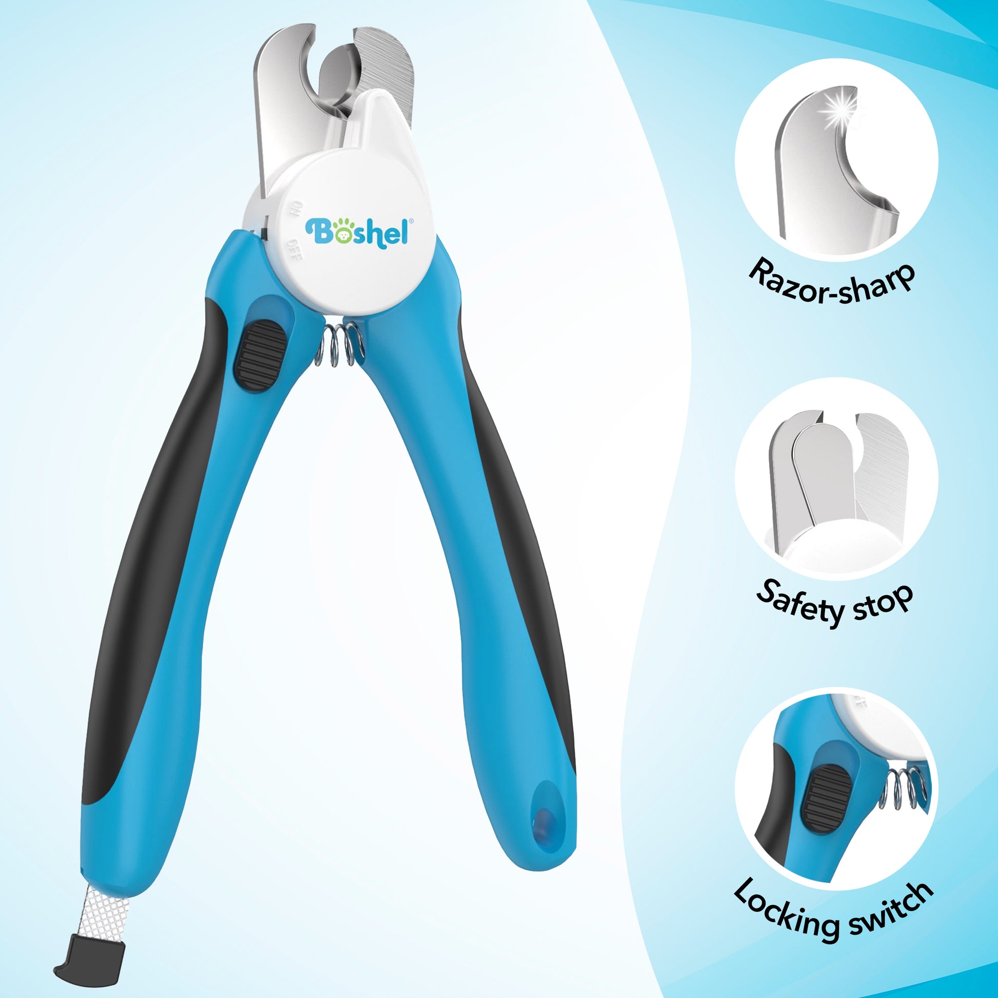 - Safe & Precise Trimming - BOSHEL dog nail clipper features a built-in light and a safety guard as a quick sensor for safety, preventing over-cutting and with the light up dog nail clippers you're ensuring a pain-free experience for your pet.