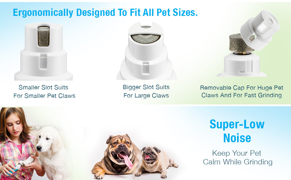 MULTIPLE GRINDING PORTS TO FIT ANY SIZE PET! – The grinder bit is outfitted with a well-designed cap, with 2 separate – different sized – holes. Which makes it suitable for any size of pet nail. Additionally, the bit cap is easily removable, to give you an additional option for larger breeds.